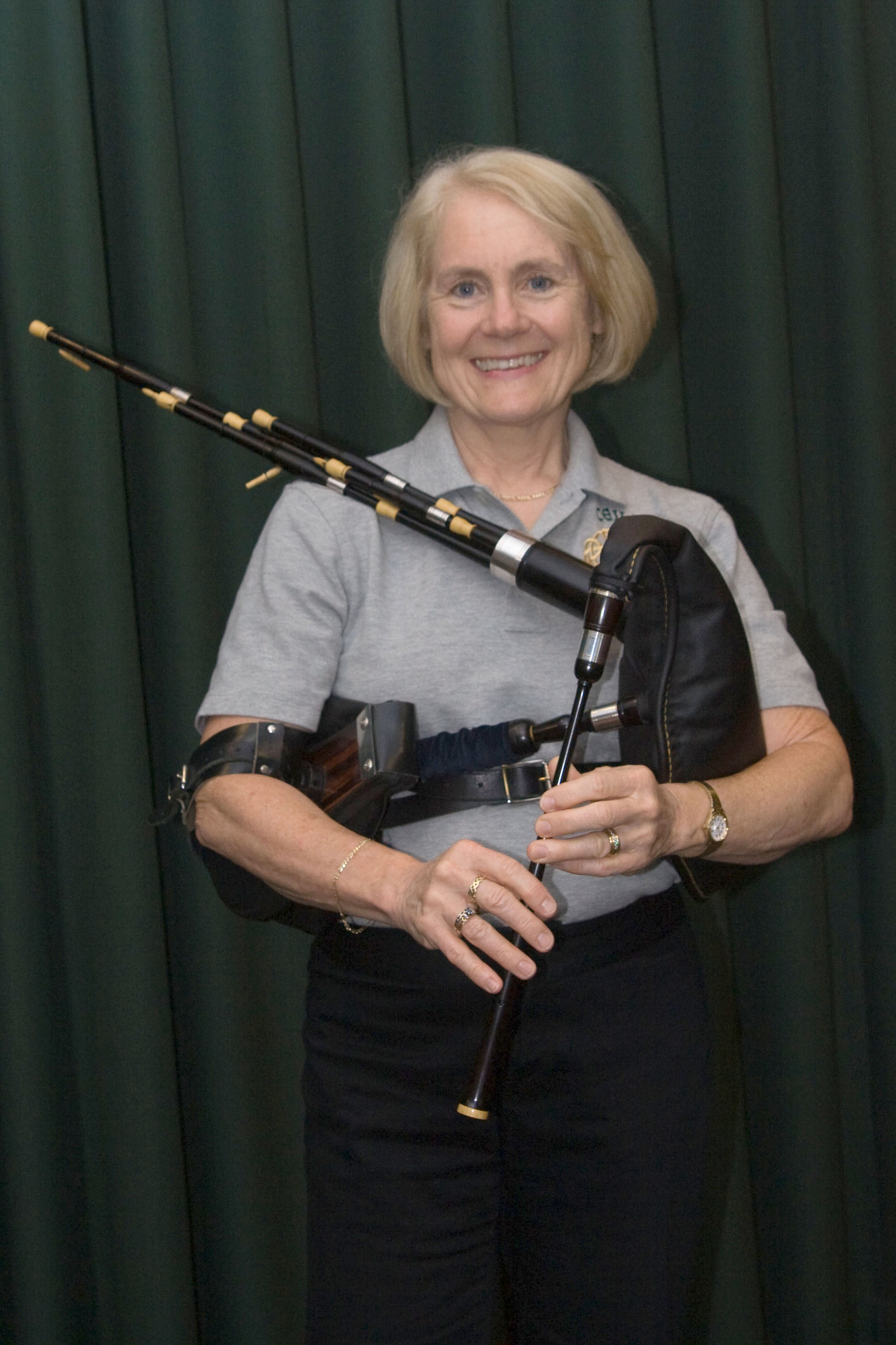 Karen always wanted to play the bagpipes.  She started in 2000on the Great Highland Pipes and  got her first pipes in 2002 and joined up with Feadan Or.   She also joined Gates Keystone Police Band and marched in parades with them for 3 years.  But playing the Great Highland Pipes was still a struggle.Then she was introduced to Scottish Small Pipes and she was smitten.  She started attending the summer workshops at the Piper’s Gathering. This inspired her to organize a group of small pipe players to play “just to have fun”… which led to the creation of Ceilidh Connection.  She has also attended the Vermont Bellows Pipes School and other workshops in Vermont.  She started out on John Walsh Shuttle Pipes, then bought  Ian Kinnear Scottish small pipes and is currently playing Hamish Moore Scottish small pipes.