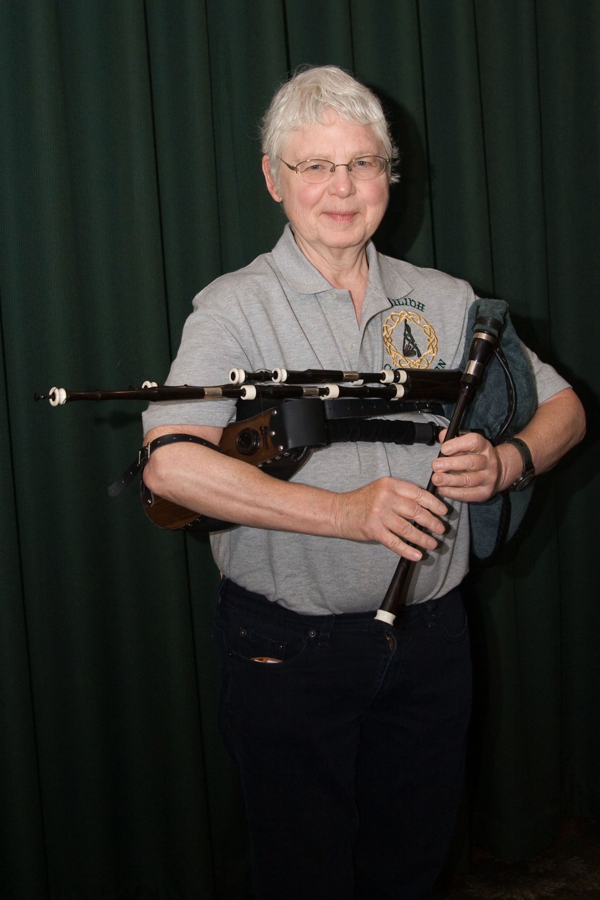 Shirley started playing pipes on the Great Highland Bagpipes and was a member of Feadan Or. She started playing small pipes on the John Walsh Shuttle pipes but has switched to bellows blown Scottish Small pipes made by EJ Jones.