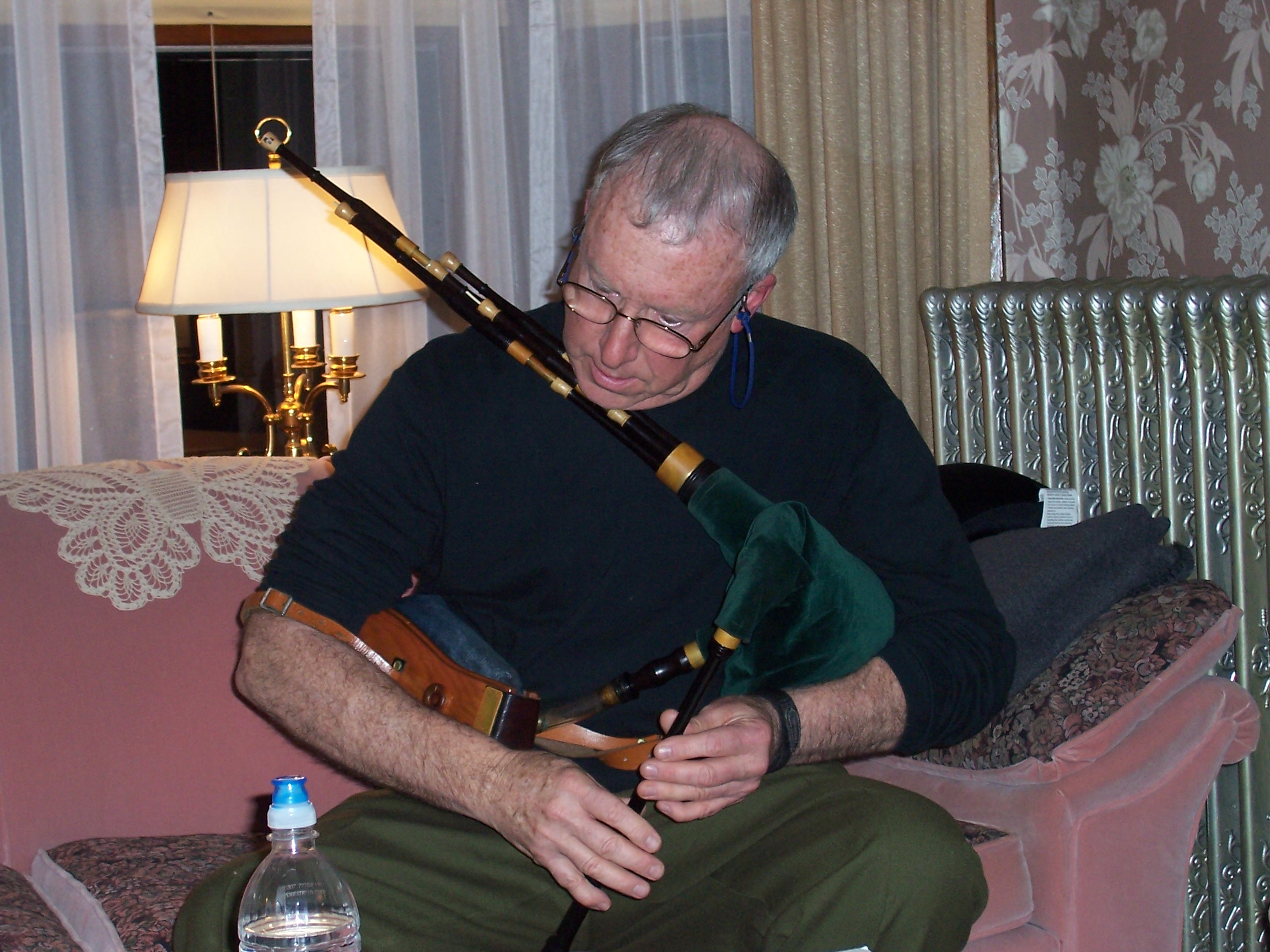 Sadly, he passed away in August of 2010. He donated his Hamish Moore Scottish Small Pipes and his Northumbrian Small Pipes to the Piper’s Gathering to be rented to new pipers.